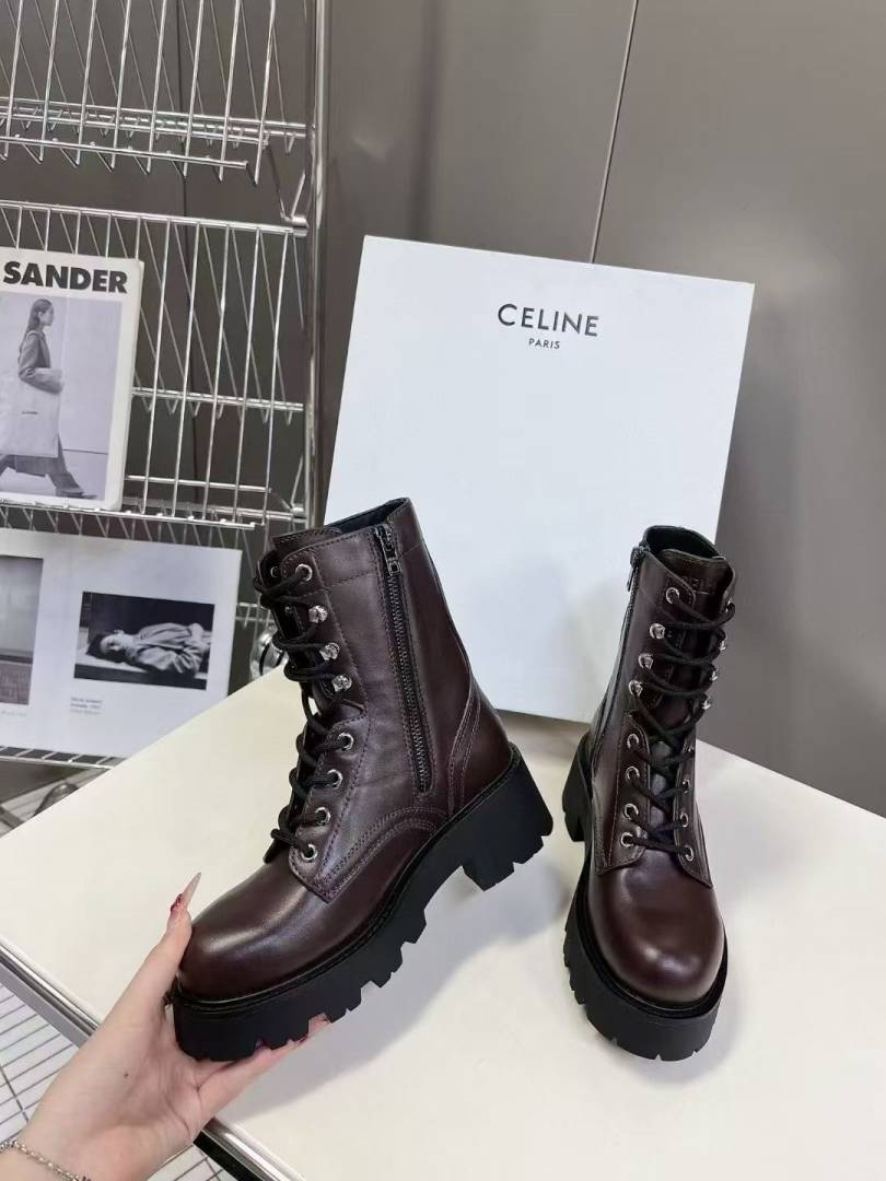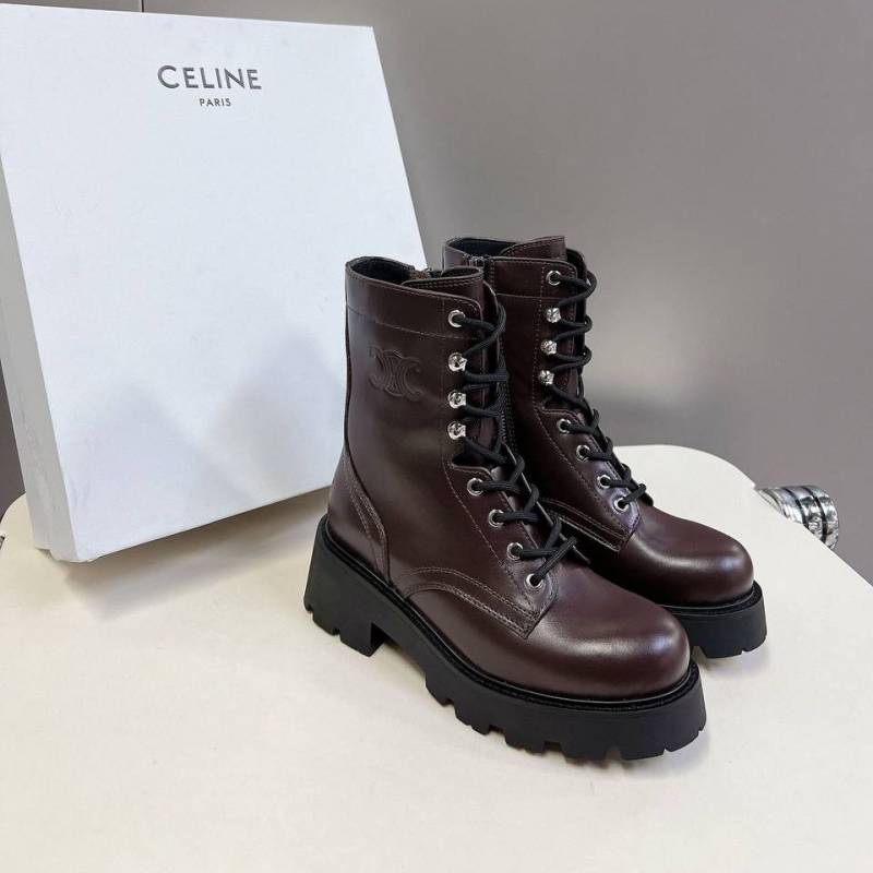 • Celinne Triomphe Rangers mid lace-up boot in calfskin leather.